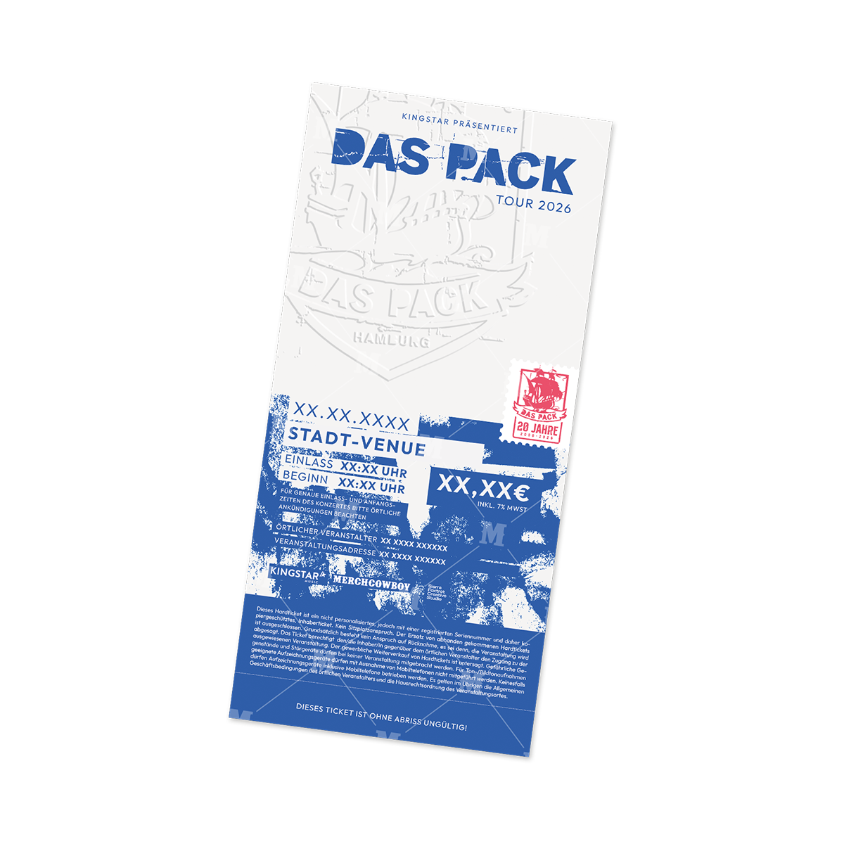 Hinweis zum Ticketverkauf: Die Merchcowboy GmbH & Co. KG ist nicht selbst Veranstalter der angebotenen Veranstaltung. Die Veranstaltung wird durch den Veranstalter durchgeführt, der auch Aussteller der Tickets ist. Die Merchcowboy GmbH & Co. KG hat es lediglich übernommen, die Tickets in folgendem Namen zu vertreiben: Das Pack | Postfach 1322 | 22885 Barsbüttel | St. Nr. 30/136/608/58
