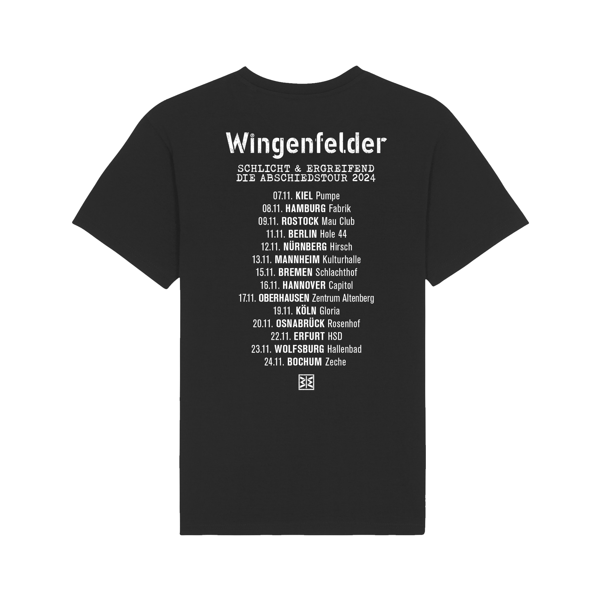 Siebbedrucktes, GOTS-Zertifiziertes T-Shirt zur Abschiedstour "Schlicht & Ergreifend" 2024 aus 100% Bio-Baumwolle.