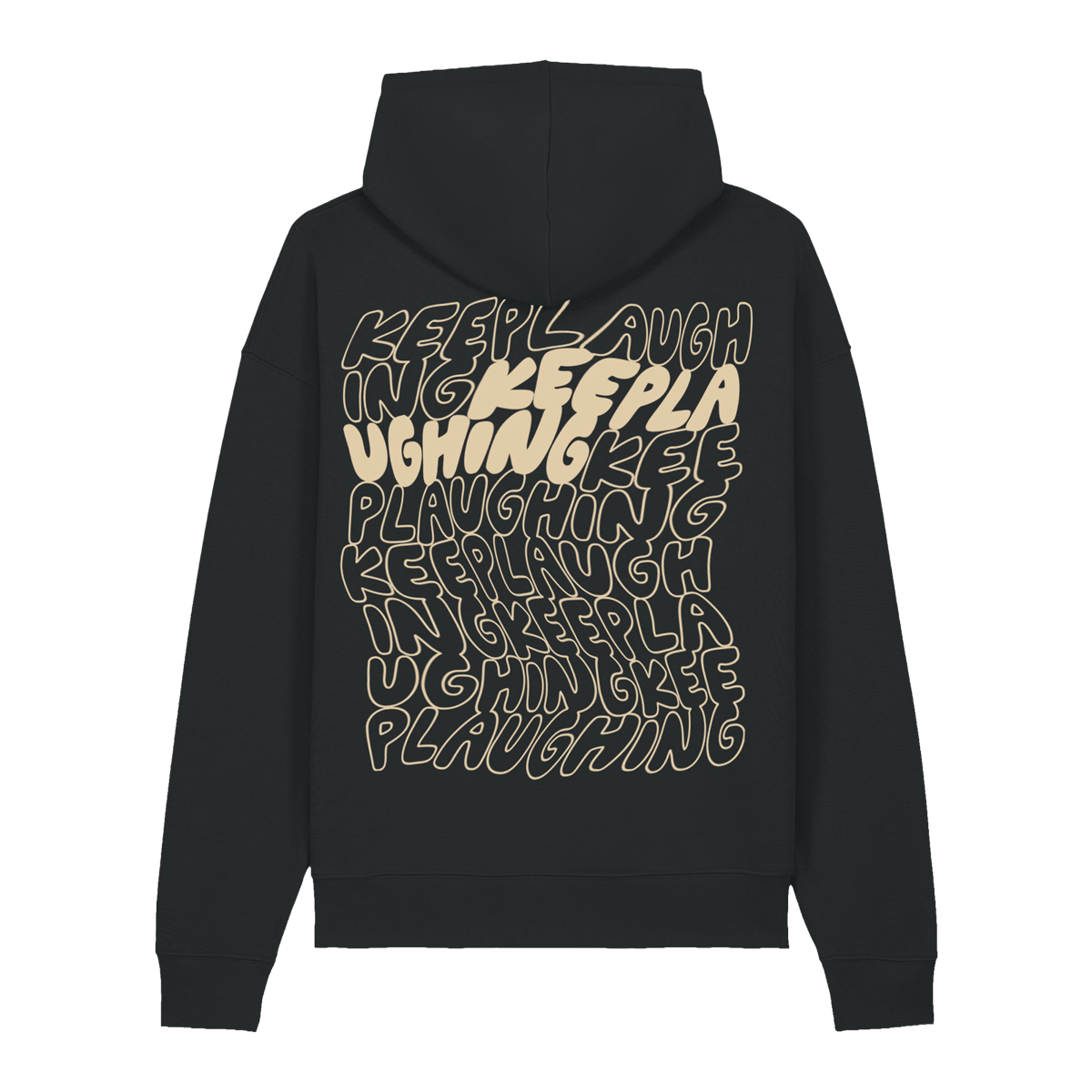 Schwarzer Hoodie "Nimm dich nicht so ernst" mit beigem Aufdruck. more