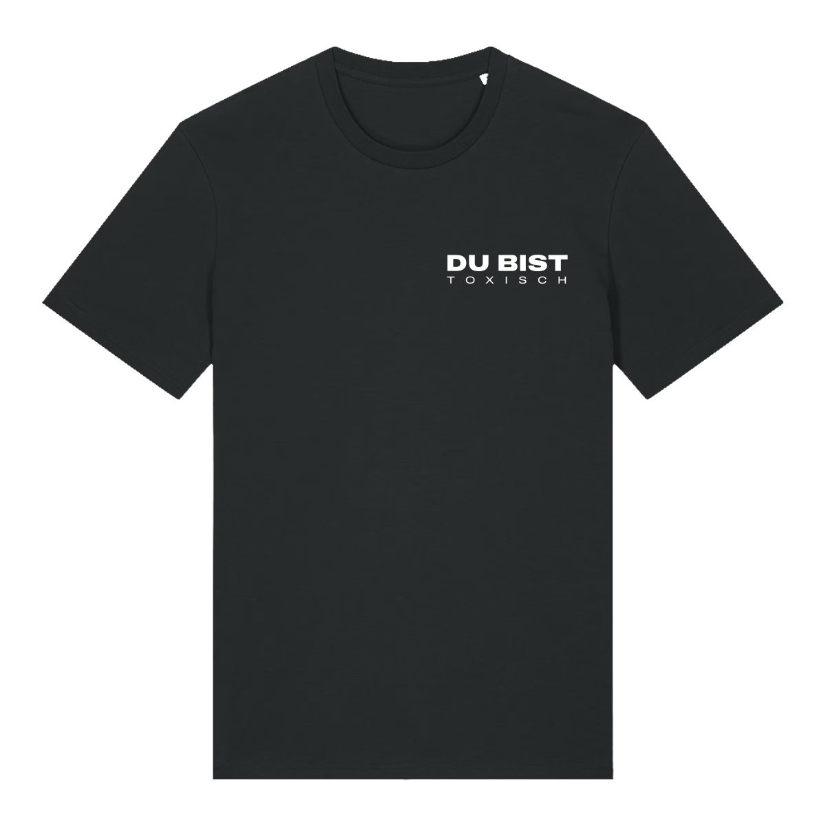 Schwarzes T-Shirt "Toxisch" mit weißem Aufdruck.