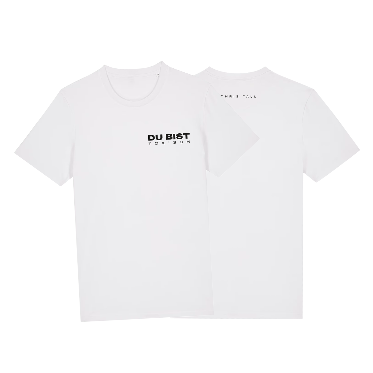 Weißes T-Shirt "Toxisch" mit schwarzem Aufdruck.