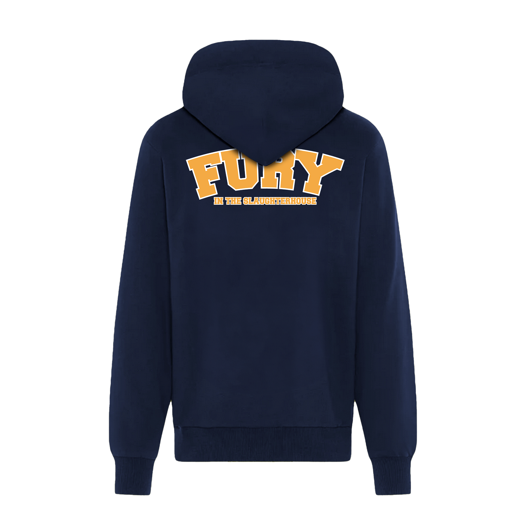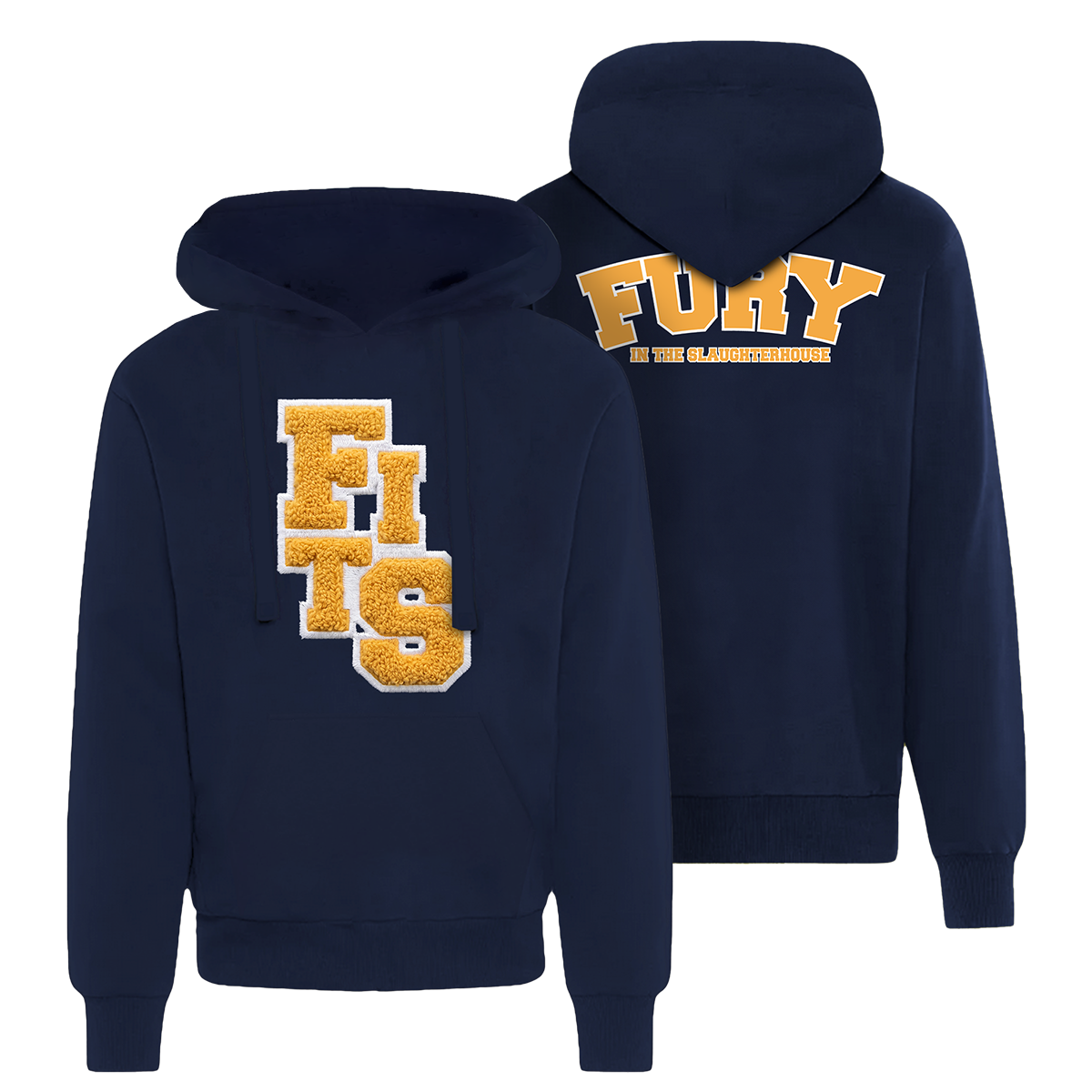• Vorne: Ein massiver, hochwertiger Chenille-Patch der „Fury in the Slaughterhouse“-Initialen im klassischen Varsity-Look. Fühlt sich so gut an, wie ein Open-Air-Abend im Sommer.