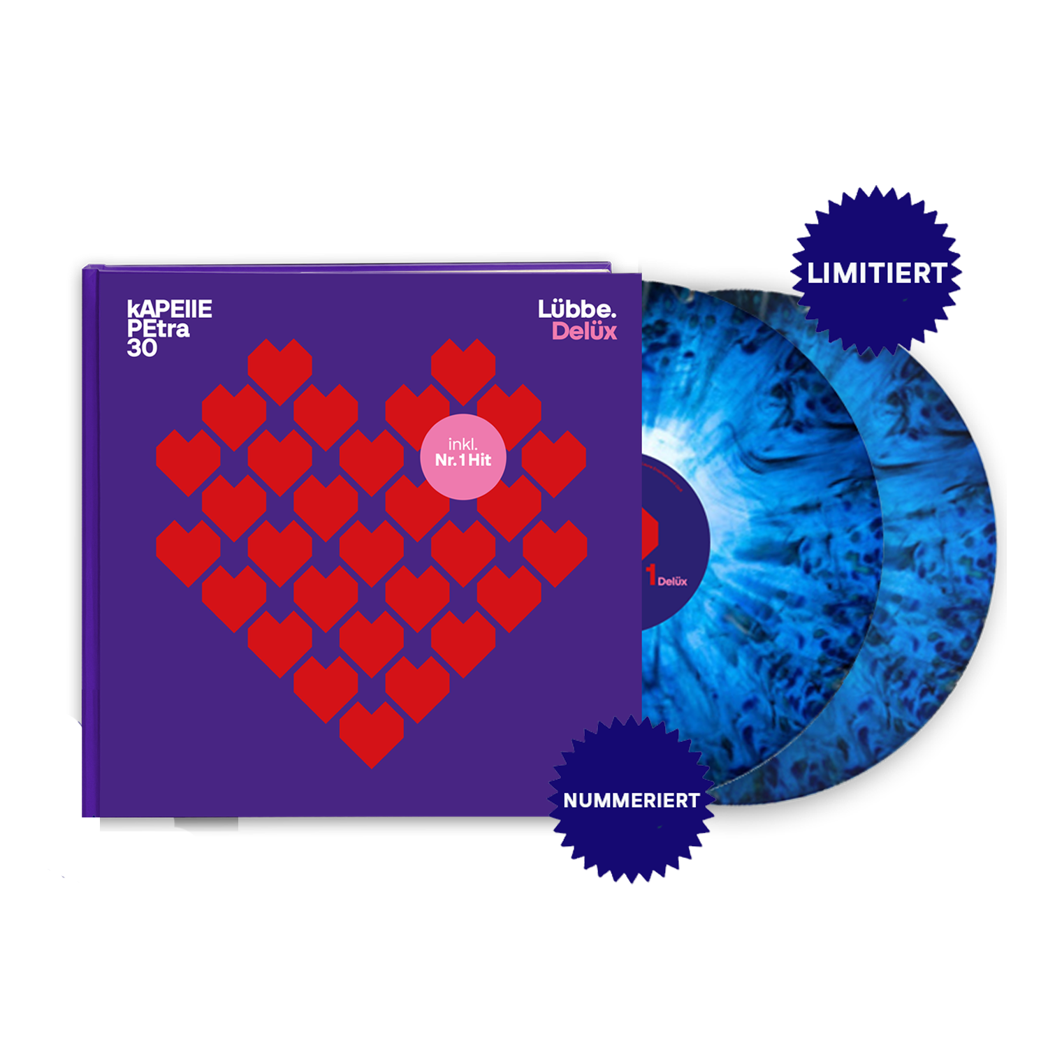 Die Zwei 180gr. LPs im sehenswerten Splatter-Look kommen in einem hochwertigen Fotobuch, das mit vielen Schnappschüssen auf 30 Jahre Kapelle Petra zurückblickt. Dieses Mediabook ist limitiert auf 750 Einheiten, fortlaufend nummeriert und wird nicht nachproduziert.